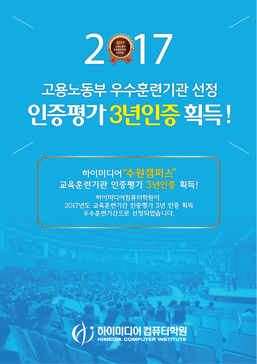 [수원]2017년 고용노동부 우수훈련기관 선정 3년인증 획득!