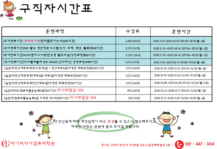 [실업자국비지원] 10월 개강일정 안내입니다!